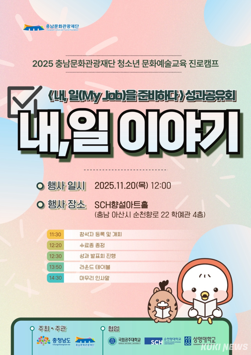 한편, 재단은 오는 20일 순천향대학교 향설아트홀에서 ‘2025 대학생 예술 진로탐색 과정 공유회 ‘내, 일(My Job) 이야기’를 개최한다고 밝혔다.