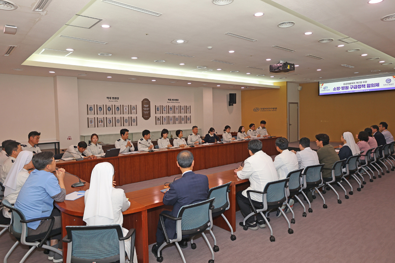두 기관은 10일 창원파티마병원 7층 베네홀에서 ‘소방·병원 구급정책 협의체’를 열고 중증응급환자 이송병원 협력체계 구축과 응급의료서비스 개선 방안을 논의했다.