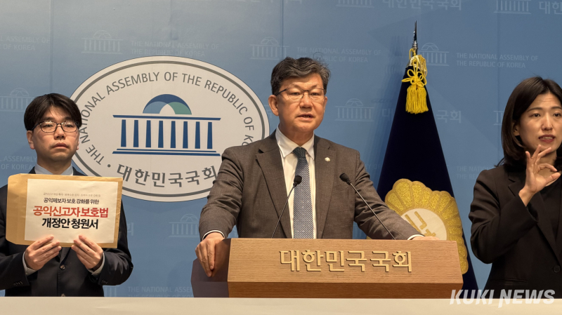 김 의원은 최근 공익 제보자들이 불이익을 당하는 사례를 설명했다. 그는 “방송통신심의위원회 내부 직원이 류희림 전 방심위원장의 민원 사주 의혹을 신고했다가 오히려 수사받게 됐고, 쿠팡의 블랙리스트 의혹을 제보한 노동자가 업무상 비밀 누설 혐의로 수사받게 됐다”며 “이런 구조에서는 부패 행위나 공익 침해 행위를 알면서도 신고하는 것들을 꺼리게 된다”고 지적했다.