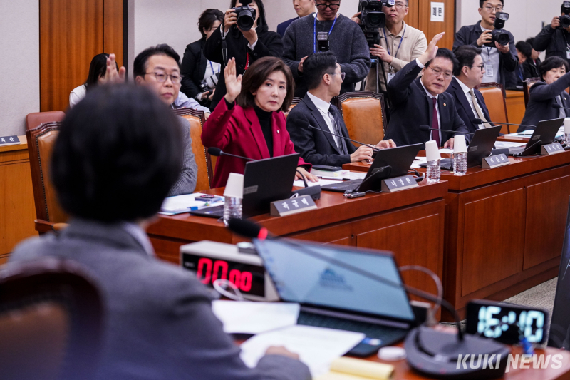 국민의힘은 이날 정성호 법무부장관, 노만석 검찰총장 직무대행 등을 증인으로 불러 긴급 현안질의를 열자고 제안했다. 추 위원장은 “증인 등에게 출석 요구일 7일 전에 출석 요구서가 송달돼야 한다”는 국회 증언 감정법 등을 이유로 거부했다. 이날 국민의힘 의원들은 증언과 참고인이 한 명도 출석하지 않은 ‘맹탕 회의’가 됐다고 지적했다.