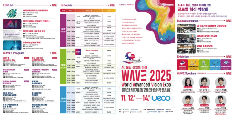 울산시는 12일부터 3일간 울산전시컨벤션센터(유에코)에서 '2025년 울산세계미래산업박람회'(WAVE 2025)를 개최한다.