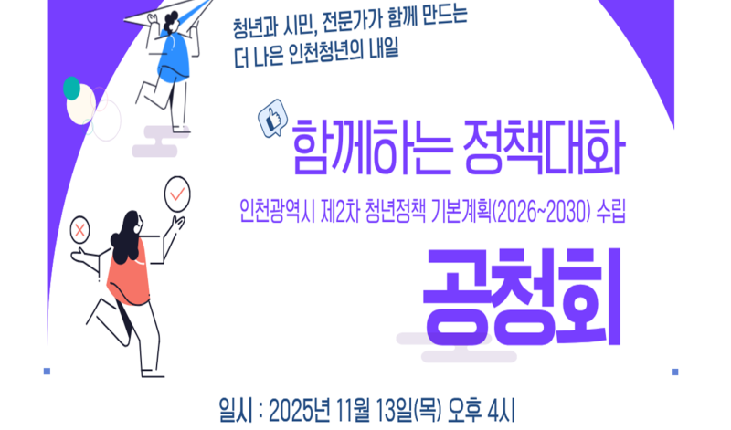 이번 공청회에서는 인천시 제2차 청년정책 기본계획의 비전과 핵심가치를 검증하고 정책의 실행 가능성과 실효성을 강화를 목표로 한다.