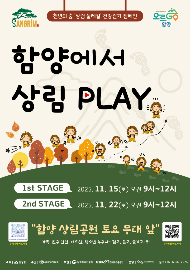 ‘상림플레이’는 단순한 걷기 행사를 넘어 참여형 문화·치유 프로그램으로 기획됐다. 이번 캠페인은 ‘천년의 숲을 걷다’를 주제로 △11월 15일 ‘1막 첫발의 내딛다’ △11월22일 ‘2막 숲과 걷고 서로를 잇다’ 등 두 가지 스토리형 테마로 운영된다.