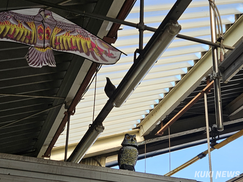 비슷한 시도는 다른 시설에서도 이어졌지만, 대체로 오래가지 않았다. 국립현대미술관 청주는 2019년 비둘기를 쫓기 위해 독수리·부엉이 모형과 연을 설치했지만 현재는 모두 철거된 상태다. 미술관 관계자는 “효과가 미약해 걷어낸 것으로 안다”며 “현재는 레이저 퇴치기만 설치돼 있다”고 밝혔다. 지난해 합정역 1번 출구에 부착돼 있던 독수리 사진도 최근 떼어진 것으로 확인됐다.