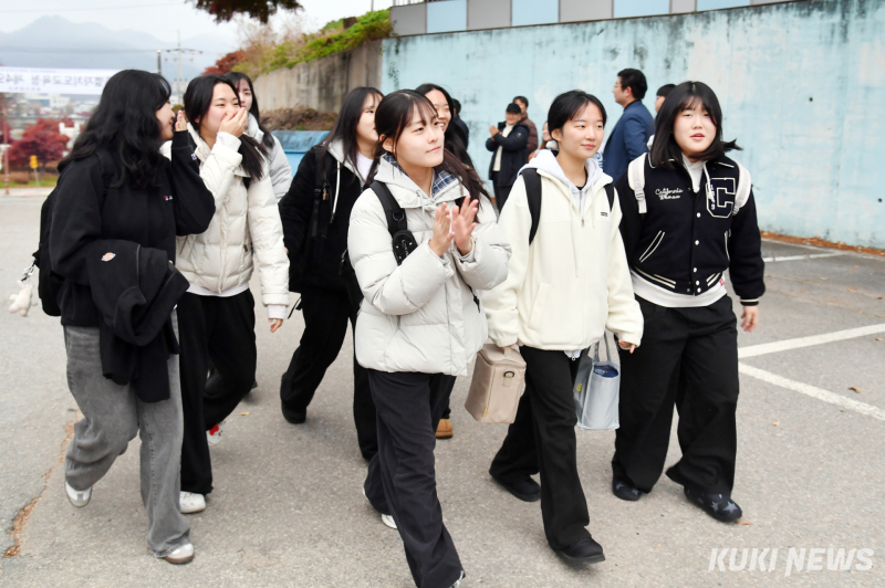 이날 오전 입실이 시작되자, 화천고교 교문 앞에서는 부모님과 포옹 후 발걸음을 옮기는 수험생, 고된 훈련에도 학업을 놓지 않은 군 장병 수험생들의 모습이 이어졌다.