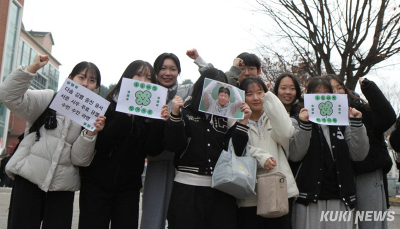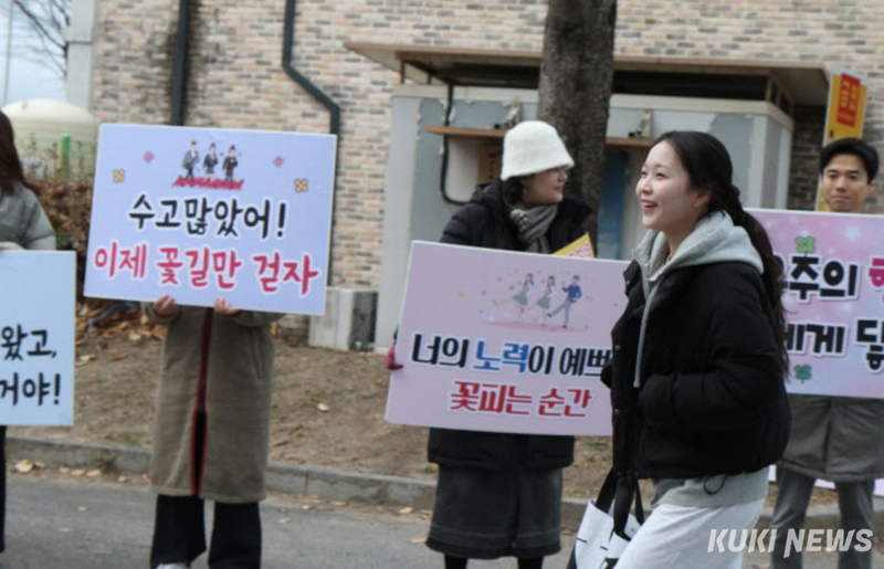 화천군청 교육복지과와 화천교육지원청 임직원, 학부모, 그리고 후배들까지 시험일인 13일 오전부터 강원특별자치도교육청 제49지구 제11시험장인 화천고등학교 앞에서 수험생들에게 뜨거운 응원을 보냈다.