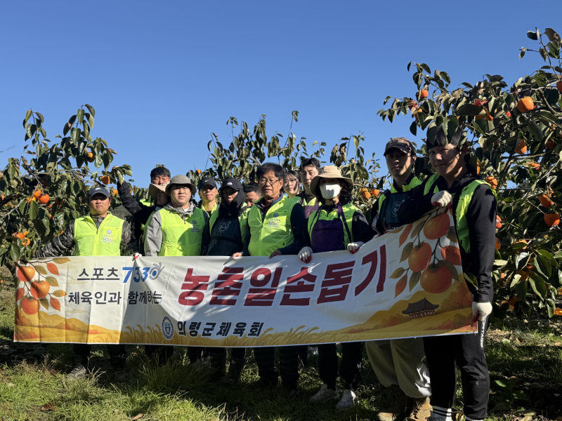 이날 체육회 임직원과 관계자들은 고령화로 인한 인력 부족으로 어려움을 겪는 농가를 찾아 단감 수확과 운반 작업을 도우며 구슬땀을 흘렸다.