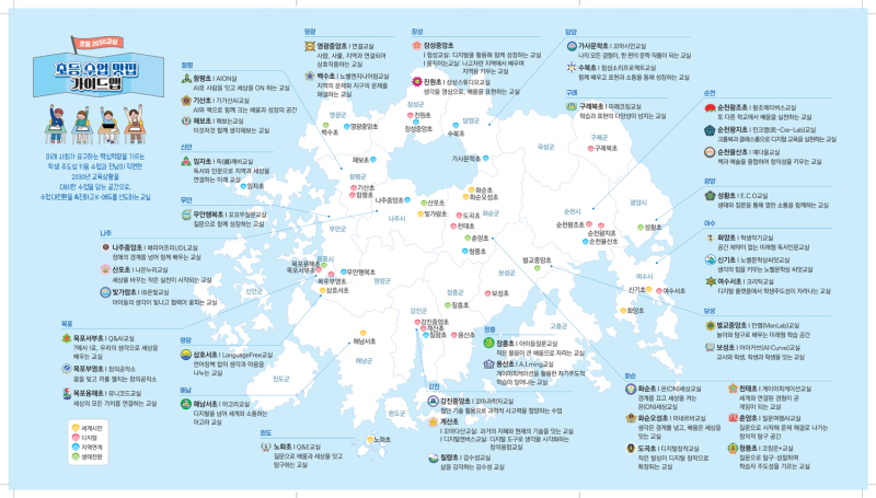 김병남 유초등교육과장은 “수업 맛집 가이드맵은 교사 개인의 성과가 아닌, 함께 연구하고 성장한 전남 교사들의 협력의 결실”이라며 “이 지도가 전남 수업 대전환의 새로운 방향을 제시하길 기대한다”고 말했다.
