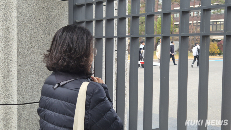 수험생들의 긴 하루가 시작된 뒤에도 교문 밖 부모들은 조용히 자리를 지켰다.