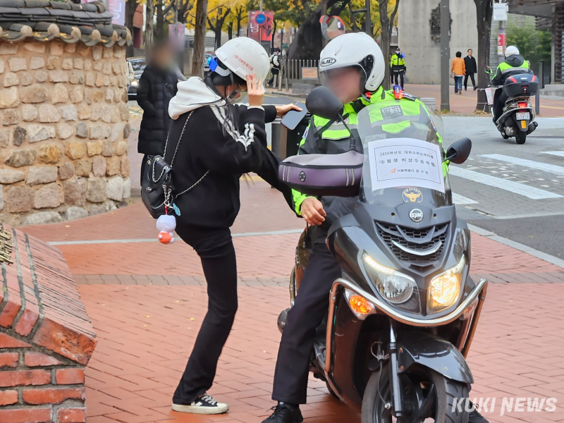 휘문고 앞에서는 다양한 수험생과 ‘예비 수험생’들의 모습도 눈에 띄었다. 반바지 차림으로 횡단보도를 건너던 한 N수생(상문고 졸업)은 “안 춥다”고 짧게 말하며 시험장으로 들어갔다. 예체능 입시를 병행 중이라는 재수생 박씨와 C씨는 이화여고 수험장으로 향하며 “졸리긴 하지만 우리는 예체능이라 마음이 비교적 가볍다. 최대한 주변에 폐 끼치지 않고 보겠다”고 했다.