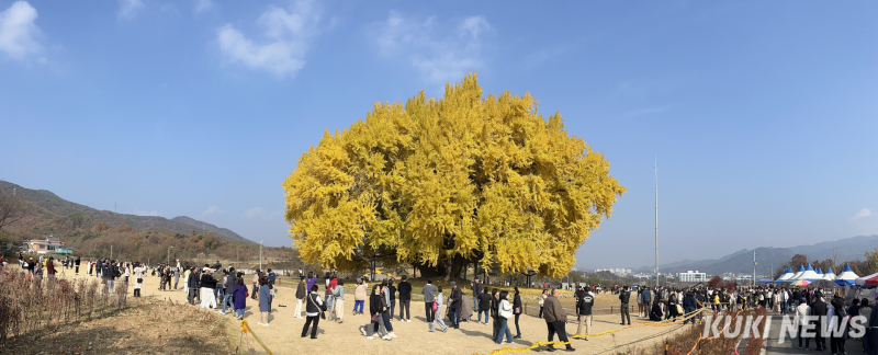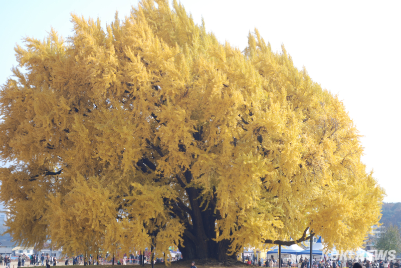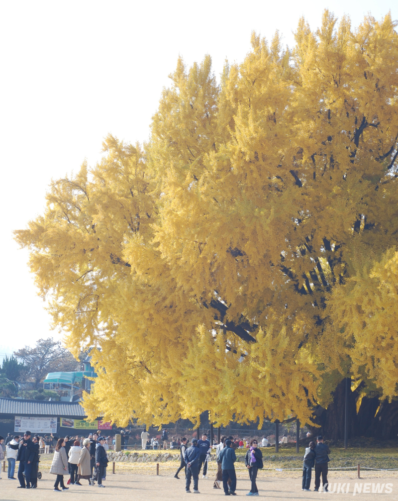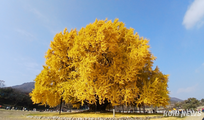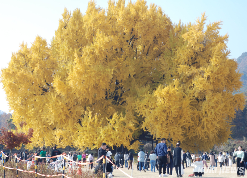 가을 ‘원주 반계리 은행나무’ 앞에서…만추 ‘황금 고목’의 위엄 [쿠키포토]