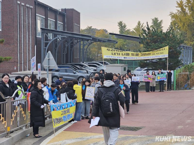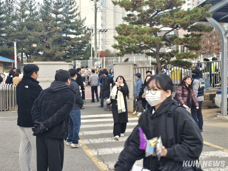 이른 아침부터 3개 수험장을 찾아 학생들을 격려하기 위해 나온 학부모와 교사 및 재학생들의 응원 열기가 긴장감을 안고 수험장으로 들어가는 수험생들에게 따뜻한 위로가 됐다.