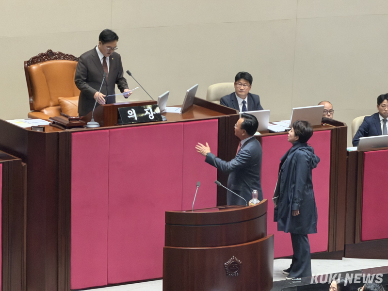 더불어민주당은 13일 김윤덕 국토교통부 장관의 불참으로 40분간 퇴장한 국민의힘 의원들이 자유 발언을 준비하자 본회의장을 퇴장했다. 이 과정에서 송 원내대표와 부 의원 간 설전이 벌어졌다.