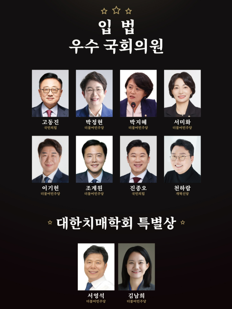 한편 대한치매학회 특별상에는 서영석·김남희 더불어민주당 의원이 선정됐다.
