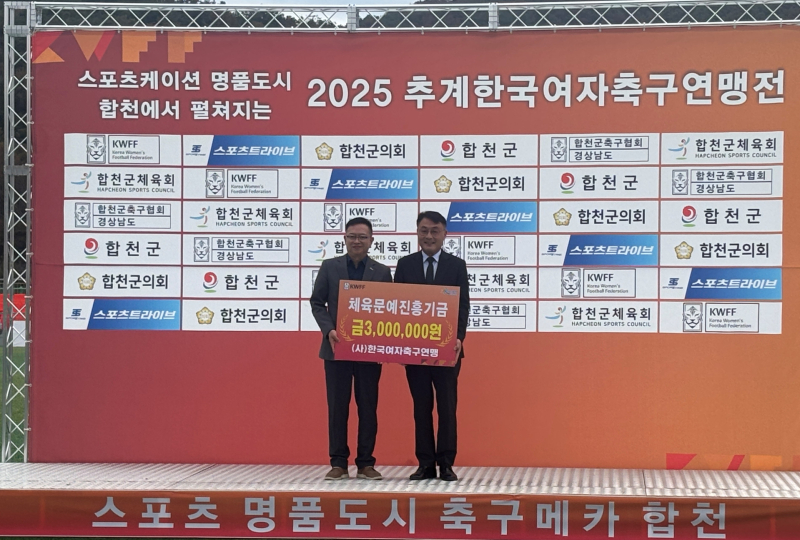 대회 주최 측인 한국여자축구연맹은 대회 폐막일인 12일, 개최지 합천군에 체육문예진흥기금 300만원을 기탁하며 지역 체육발전에 힘을 보탰다.
