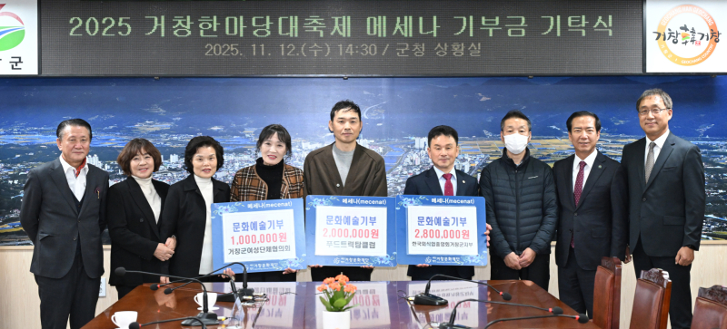 구인모 거창문화재단 이사장은 “거창군의 문화예술 발전을 위해 메세나 사업에 동참해 주신 모든 단체와 관계자분께 깊은 감사를 드린다”며, “앞으로도 기부 문화가 확산돼 지역 문화예술이 더욱 풍성해지길 기대한다”고 밝혔다.