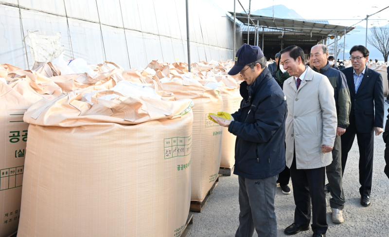 거창군은 지난 12일 거창그린에서 ‘2025년산 공공비축 건조벼’를 첫 매입했다.