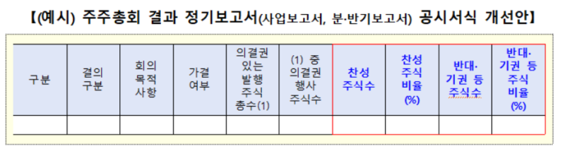 현재는 상장사들이 주주총회 의안별 가결 여부와 주요 논의 내용만 간단하게 공시하고 있는 실정이다. 내년 3월부터는 주주총회 의안별 찬성률, 반대·기권 등 비율 등의 표결 결과를 거래소에 수시 공시하고, 정기보고서에 해당 내용을 반드시 포함해야 한다. 당국은 이를 통해 주주총회 투명성과 글로벌 정합성이 제고될 것으로 기대하고 있다.