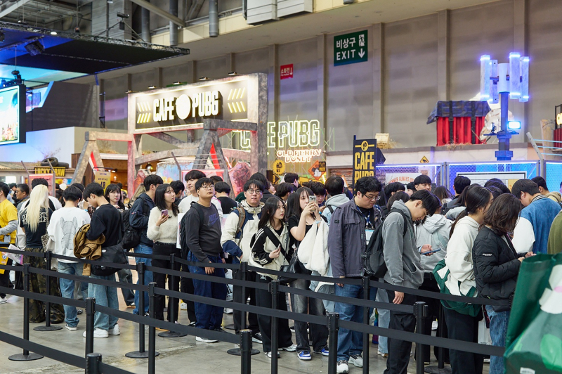 ‘PUBG: 배틀그라운드(PUBG: BATTLEGROUNDS, 이하 배틀그라운드)’ IP를 활용한 체험형 휴게공간 ‘카페 펍지(CAFÉ PUBG)’ 역시 관람객들의 필수 방문 코스로 자리 잡았다. 수제 도넛 브랜드 올드페리도넛(Old Ferry Donut)과 협업한 한정 메뉴와 배틀그라운드 세계관을 테마로 한 미니게임, 체험 이벤트가 인기를 끌었다. 아울러 스탬프 랠리 미션을 완료한 관람객에게는 배틀그라운드 우산, 쿠션, 글라스컵 등 한정판 굿즈가 증정돼 팬들의 만족도가 높았다.