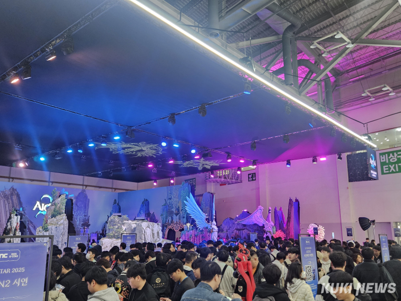 그러나 이날 가장 긴 대기열을 만든 건 엔씨소프트의 신작 MMORPG ‘아이온2’였다. 관람객 다수는 입장 직후 곧바로 엔씨 부스로 향했고 시연존 앞에는 ‘여기서부터 120분’이라는 안내판이 무색할 정도로 줄이 끝없이 이어졌다. 엔씨는 관람객들이 몰리자 임시 대기줄을 추가했지만 통로가 막히자 잠깐 대기줄을 마감하기도 했다.