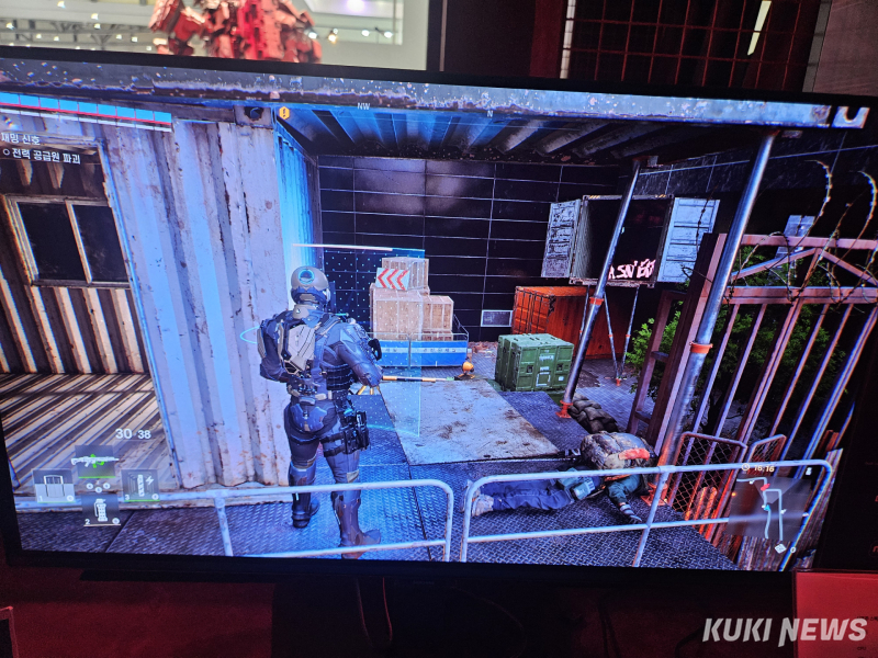 ‘신더시티’ 부스는 많은 이용자가 몰려 상시 만석이었고 180분 이상의 대기시간이 발생할 정도로 인기가 많았다. 이번 지스타에서의 신더시티 시연 빌드는 PC 버전이다. ‘Part.1 울프 스쿼드’와 ‘Part.2 챔버17’ 중 하나의 콘텐츠를 선택해 즐겨볼 수 있다. ‘챔버 17’이 좀 더 난도가 높다. 시연하는 관람객들은 파괴된 서울을 배경으로 주요 인물 중 하나인 ‘세븐’의 서사를 체험할 수 있다.