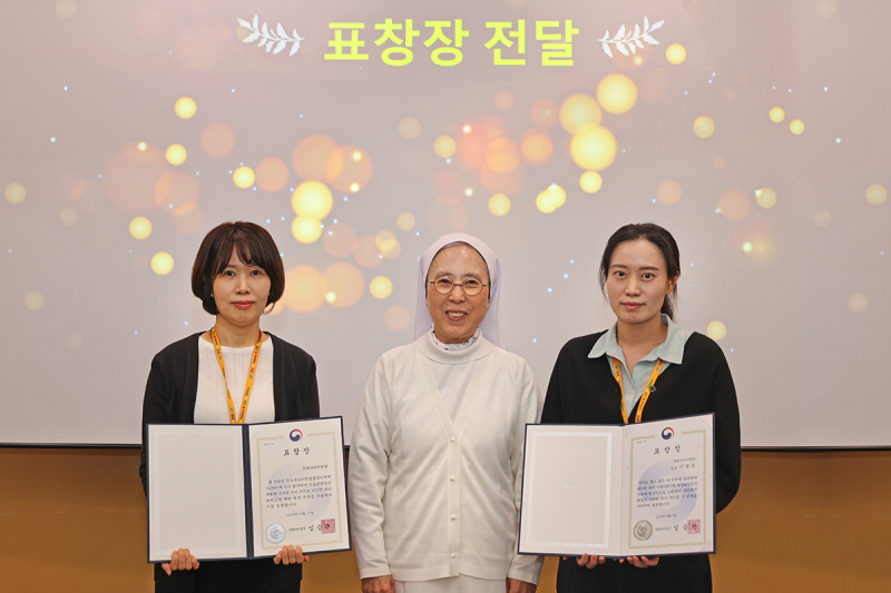 박진미 병원장은 13일 7층 베네홀에서 박미경 감염관리실 팀장과 이정은 의료정보팀장에게 표창을 전달했다.