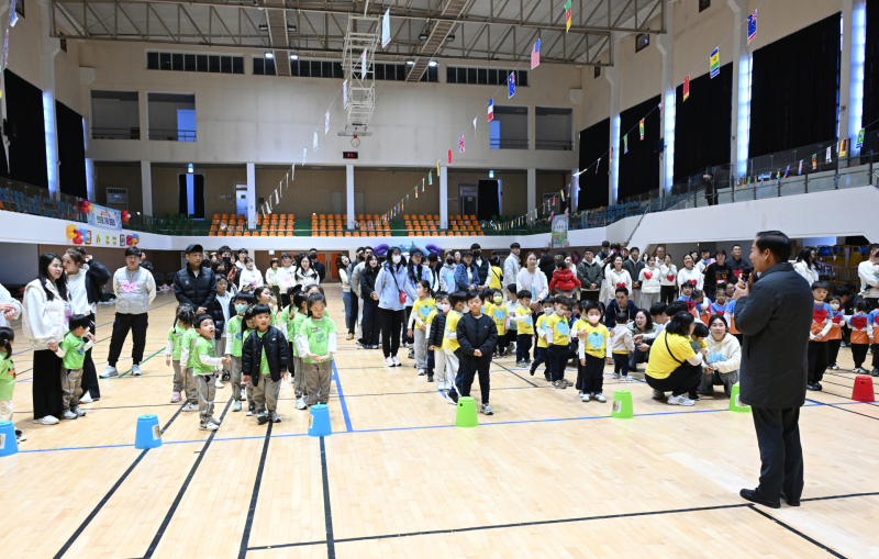 거창군은 지난 14일 거창스포츠파크 실내체육관에서 관내 3개 국공립어린이집 연합 가을운동회를 개최했다. 이번 행사에는 어린이와 학부모, 교직원 등 300여명이 참석했다.