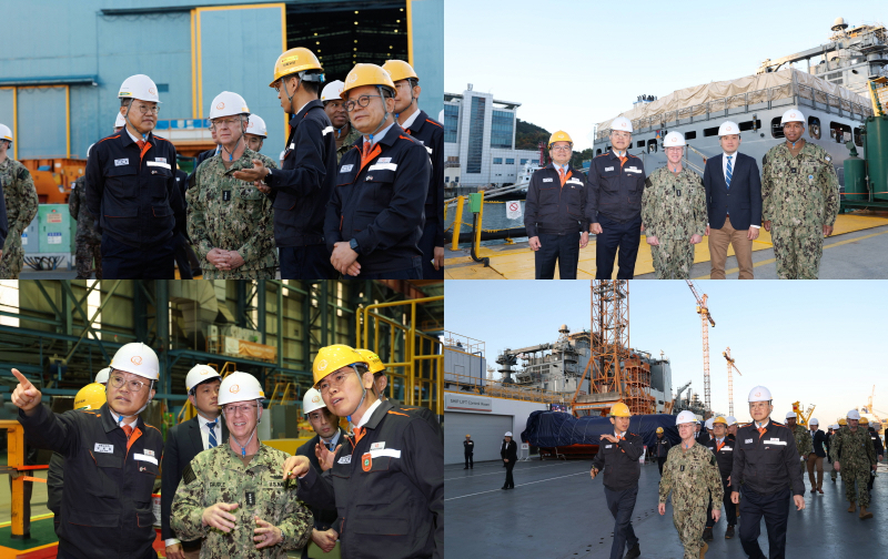 한화오션 경영진은 방문단에 "미 해군 군수지원함 MRO를 넘어 전투함 MRO, 나아가 전투함 신조로까지 협력 영역을 확대하겠다"고 말했다.