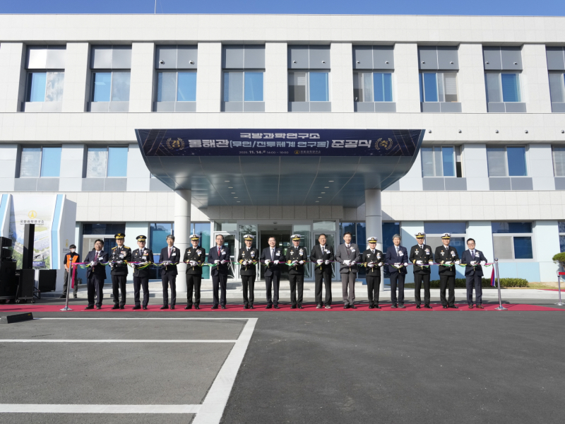 창원특례시는 14일 진해첨단산업연구단지에서 국방과학연구소(ADD) 첨단함정연구센터 ‘동해관(무인/전투체계 연구동)’ 준공식을 열고 미래 첨단함정 연구개발의 새 출발을 알렸다.
