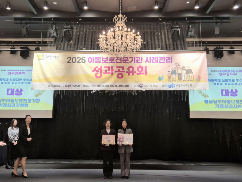 ◆경상남도, 아동학대 심리 지원 우수사례 공모전 대상 수상