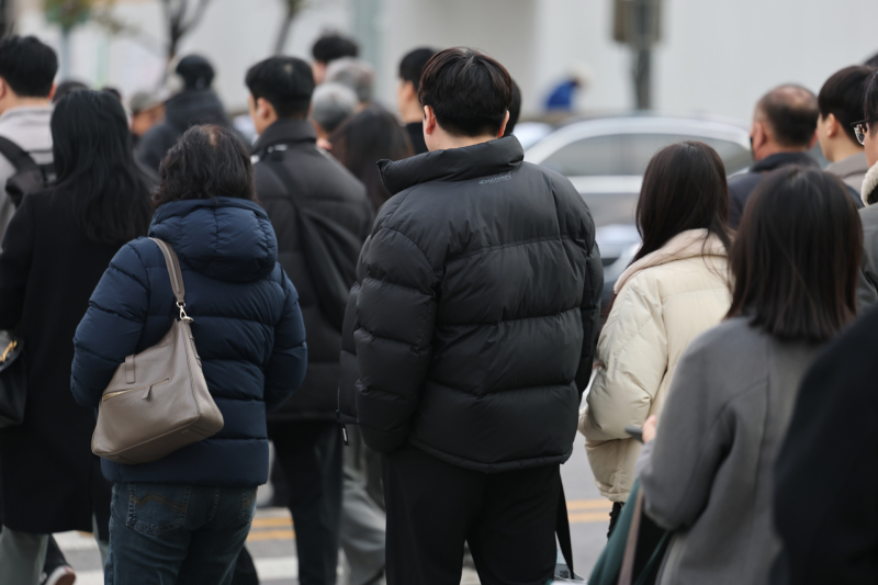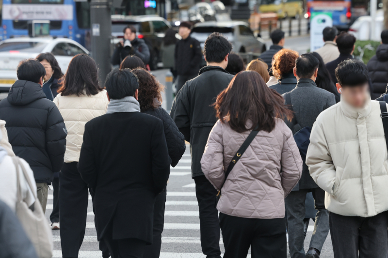 올가을 들어 가장 추운 날씨를 보인 28일 오전 서울 종로구 광화문네거리에서 두터운 외투를 입은 출근길 시민들이 발걸음을 옮기고 있다.