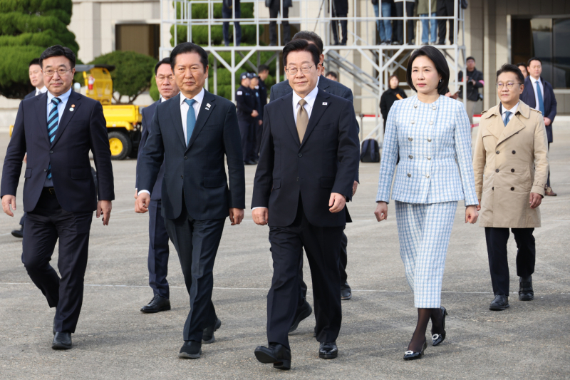 이 대통령은 이날 오전 9시15쯤 김혜경 여사, 참모들과 함께 성남 서울공항을 통해 아랍에미리트(UAE) 아부다비로 출국했다.