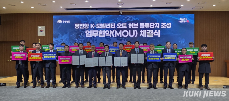 김태흠 지사는 17일 도청 대회의실에서 오성환 당진시장, 이정환 SK 렌터카 대표이사 등과 ‘케이(K)-모빌리티 오토 허브 일반물류단지 조성 사업’ 추진을 위한 업무협약을 체결했다.
