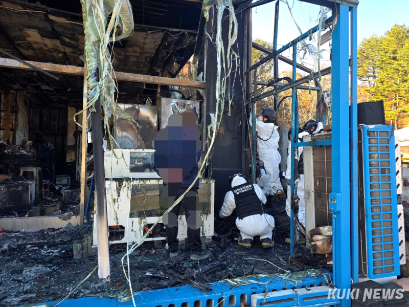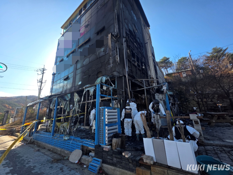 태백 건물 화재 합동감식 중인 소방·경찰