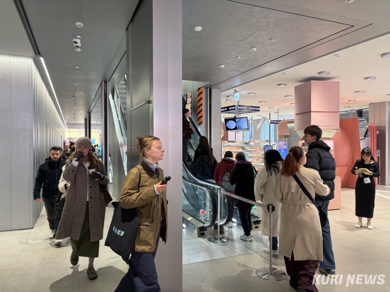 오전 10시 개점 전부터 매장 앞은 이미 외국인 관광객들의 ‘오픈런’ 행렬로 북적였다. 오픈 20분 전부터 모여든 이들은 국적과 성별, 연령이 다양했고, 개점 시간에 맞춰 줄지어 입장하며 매장 곳곳에서 영상을 찍고 포토존 앞에서 인증샷을 남겼다. 매장 관계자는 “매일 아침 이렇게 대기하다가 입장하는 외국인 고객이 많다”고 설명했다.