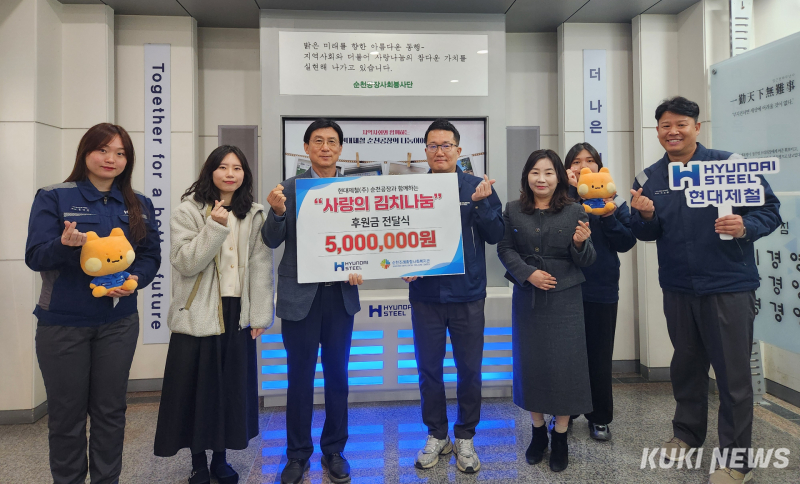 현대제철 순천공장은 17일 현대제철 순천공장 홍보룸에서 동절기를 맞아 지역 내 취약계층을 위한 ‘사랑의 김장김치’ 성금 전달식을 진행했다고 밝혔다.