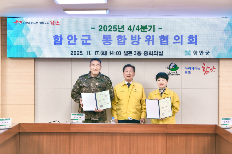 함안군은 17일 오후 군청 별관 3층 중회의실에서 조근제 함안군수 주재로 ‘2025년 4분기 함안군 통합방위협의회(의장 조근제 함안군수)’를 열었다.