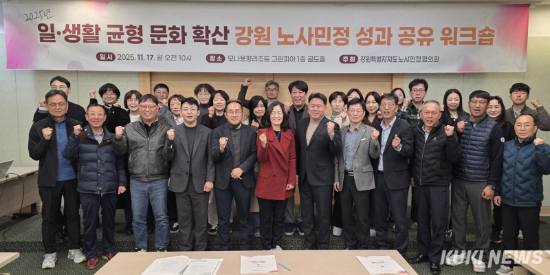 강원 노사민정협의회는 17일 모나용평리조트 그린피아콘도에서 '일·생활 균형 문화 확산 성과 공유 워크숍'을 개최했다. 이날 참여 기업들은 사내 일·생활 균형 정책을 소개하고, 해당 정책이 회사 경쟁력에 미치는 긍정적 영향을 발표했다.