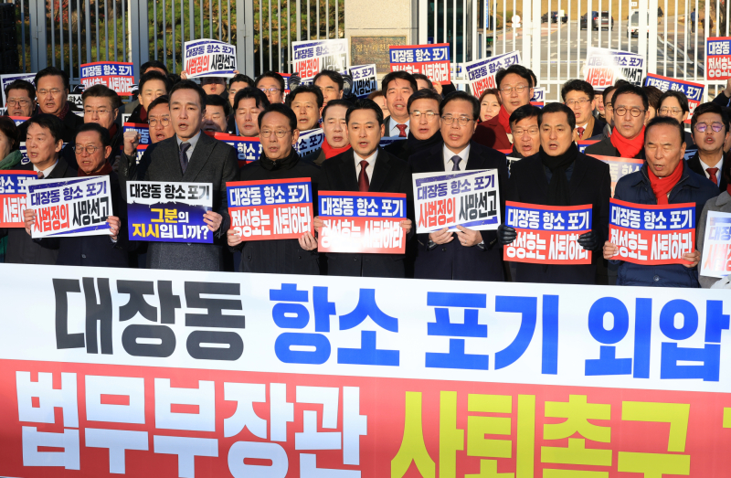 국민의힘이 대장동 항소 포기 외압 의혹을 규탄하며 정성호 법무부 장관을 향해 사퇴를 촉구했다.