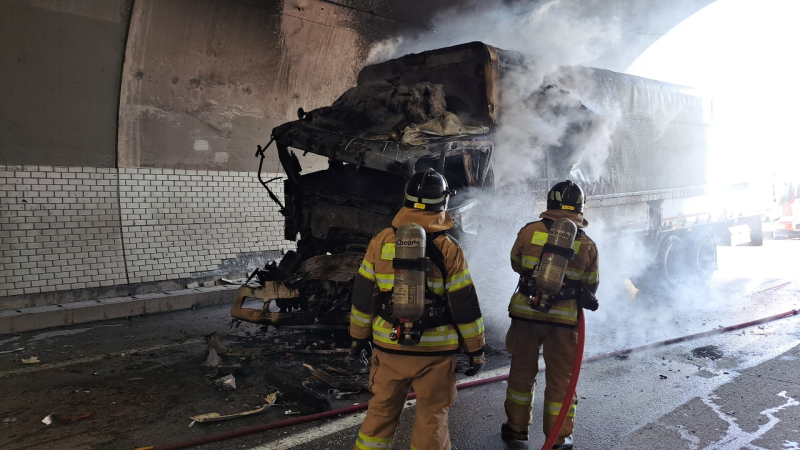 사고 직후 한국도로공사는 안전안내문자를 통해 터널 내 통행 전면 차단과 국도 우회를 안내했다.