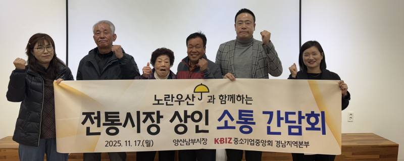 중소기업중앙회 경남지역본부(경남 중소기업회장 노현태)는 지난 17일 양산남부시장(번영회장 김성제)에서 전통시장상인과 소통 간담회를 개최했다. 이날 소기업·소상공인공제의 사회안전망 기능 및 ‘중소기업 공제사업기금’의 도산방지 기능에 대한 설명도 이어졌다