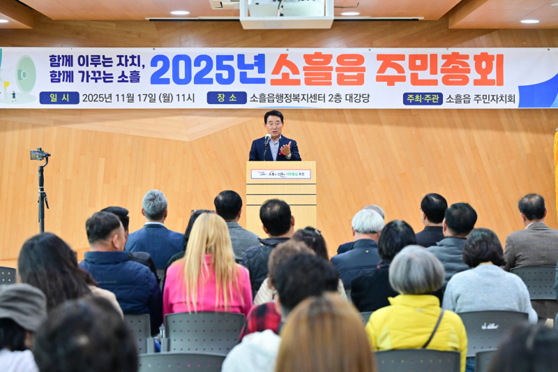김상혁 소흘읍 주민자치회장은 "주민총회는 한 해 동안 우리 마을이 걸어온 길을 돌아보고, 앞으로의 방향을 함께 결정하는 중요한 자리"라며 "주민이 주인이 되어 소흘읍의 미래를 만들어 갈 수 있도록 적극적인 참여를 부탁드린다"고 했다.