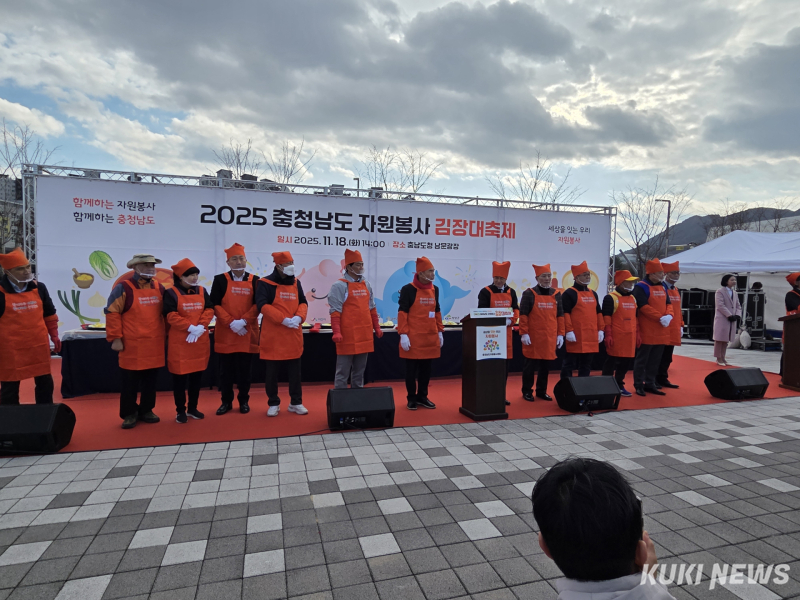 도는 18일 도청 남문 다목적광장에서 김태흠 지사 등 700여 명이 참석한 가운데 ‘2025 충남도 자원봉사 김장대축제’ 행사를 개최했다.