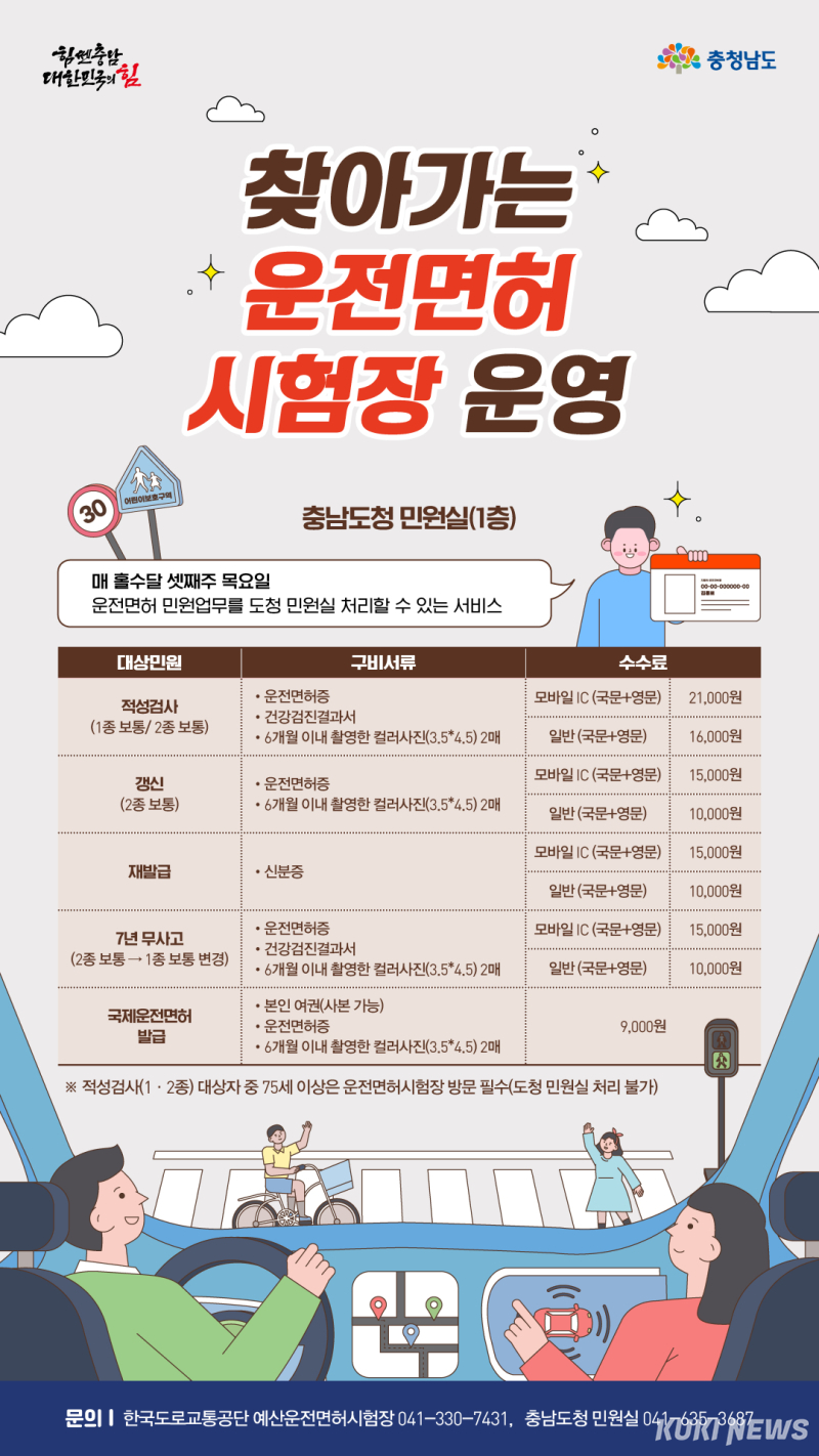 찾아가는 운전면허시험장은 한국도로교통공단 예산운전면허시험장과 협력해 운전면허 관련 민원 업무를 도청 민원실에서 직접 처리하는 서비스로, 내포신도시 인근 거주 도민들에게 큰 호응을 얻고 있다.
