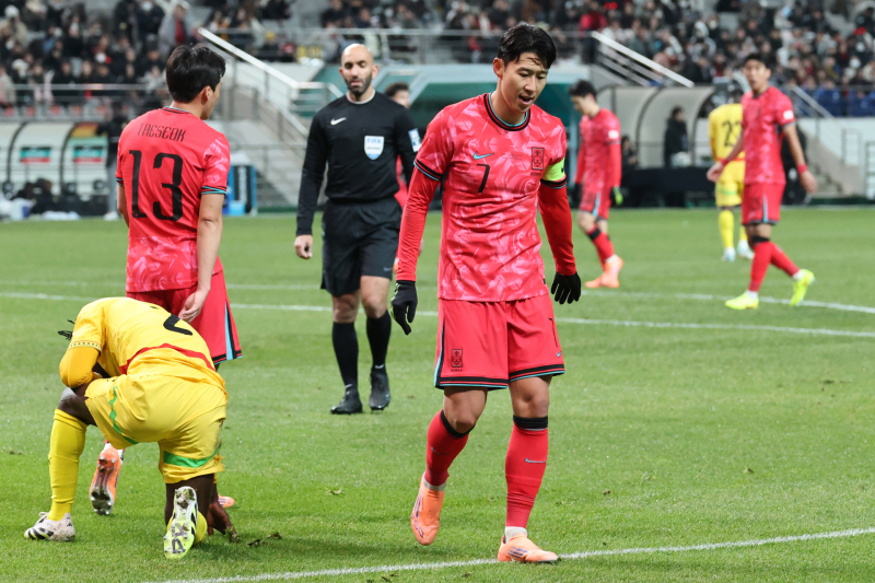 홍 감독은 이날 3-4-3을 꺼냈다. 손흥민과 오현규, 이강인이 가나 골문을 노렸다. 그 뒤 중원에는 옌스 카스트로프, 권혁규가 위치했다. 좌우 풀백으로 이태석과 설영우가 출전했다. 박진섭과 김민재, 조유민이 3백으로 나섰다. 송범근이 골키퍼 장갑을 꼈다.