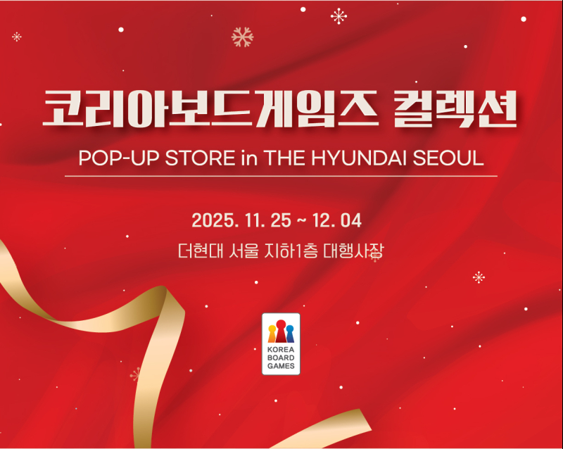 이번 ‘코리아보드게임즈 컬렉션 팝업 스토어’는 추운 겨울 실내 놀이 문화로 적격이며 크리스마스를 앞두고 선물로도 최적인 상품을 다양하게 선보인다. 코리아보드게임즈 관계자는 “지난 용산 팝업 스토어가 열흘 동안 13만명 이상 다녀간 것에 힘입어 다시 열리는 만큼, 이전 팝업 방문자가 재방문해도 새롭게 즐길 수 있도록 더 많은 상품을 준비했다”고 강조했다. 한편 팝업 스토어는 더현대 서울 지하1층 대행사장에서 운영한다.