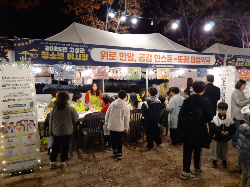 경상남도 고성군청소년상담복지센터(센터장 이진만)는 11월14일 송학동 고분군 일원에서 지역 청소년과 주민을 대상으로 또래상담자와 함께하는 체험 부스 '위로 한알, 공감 한스푼 - 또래 마음약국'을 운영했다.