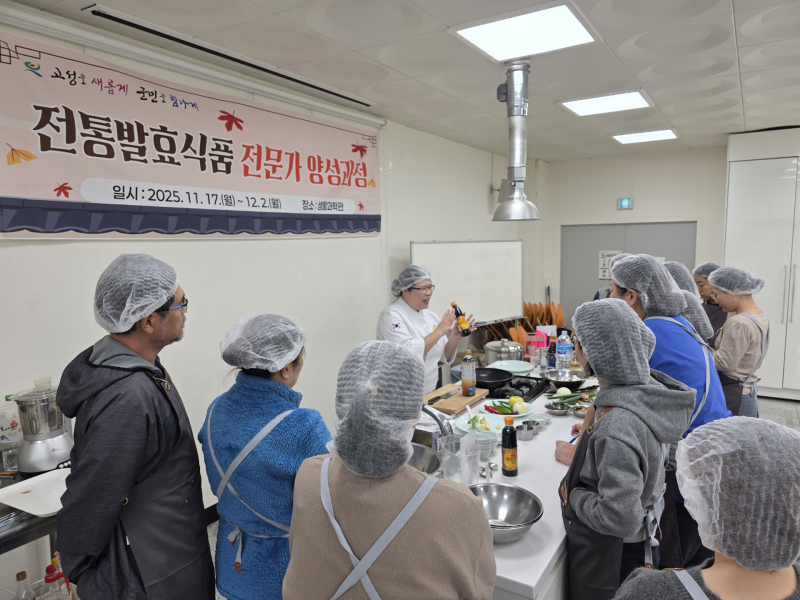 이번 과정은 전통발효음식전문가 2급 자격증 취득을 목표로 진행되며 지역 농산물 활용과 발효식품 제조 기술에 관심 있는 예비 창업자와 군민 11명이 참여한다. 교육은 12월22일까지 총 6회 회당 4시간씩 운영된다.