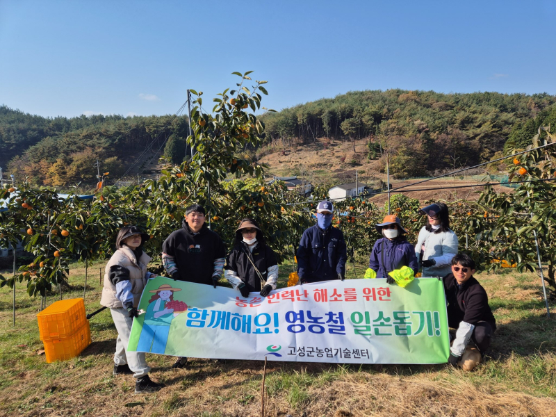 가을 수확철을 맞아 고성군 농업기술센터 농업기술과 직원들이 농촌의 일손 부족 해소를 위해 현장 지원에 적극 나섰다.