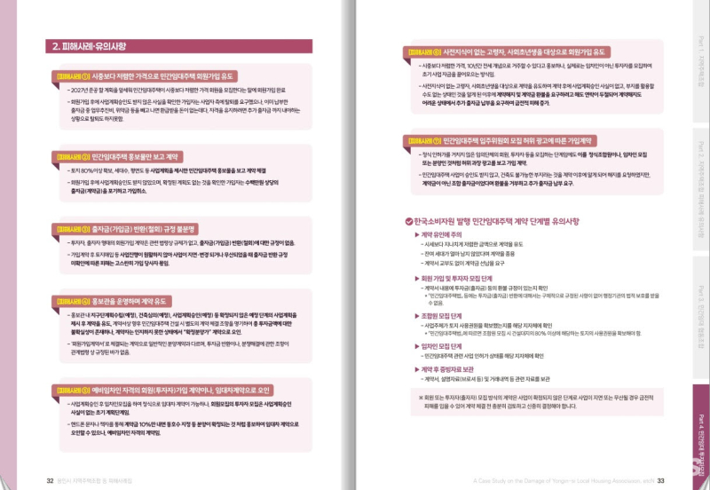 이와 함께 ‘지역주택조합 등의 피해사례집’을 제작했다. 사례집은 시청 민원여권과와 각 구청 민원지적과, 각 읍·면·동 행정복지센터에서 볼 수 있으며, 시청 홈페이지에서도 다운로드와 열람이 가능하도록 했다.